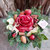 Großkopfige haltbare Wachsrose in verschiedenen Farben hübsch aufgebunden mit Wintergrün, passenden Zapfen, Pfeffer etc. Ab Januar ohne Weihnachtsdeko!