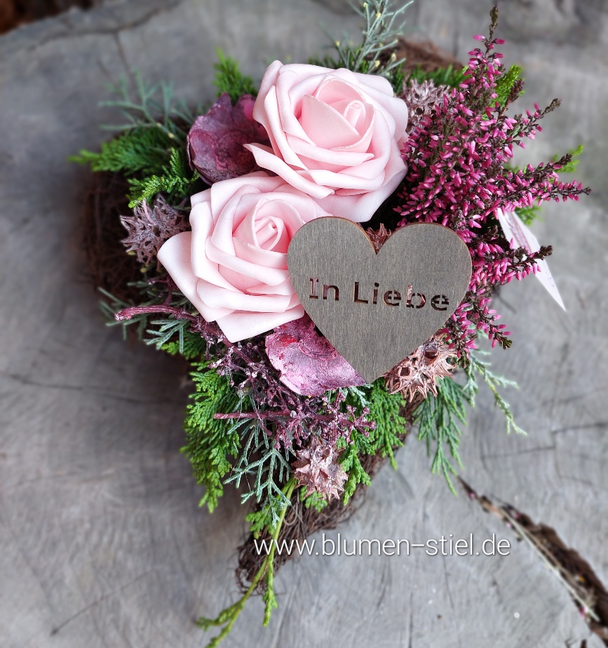 Verschiedene Varianten im Korbgefäß, mit Spruchherz
